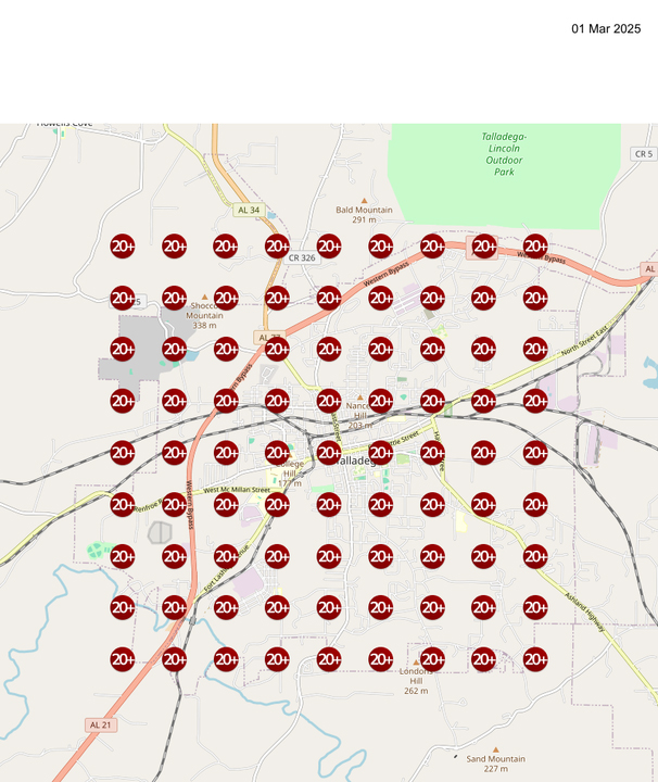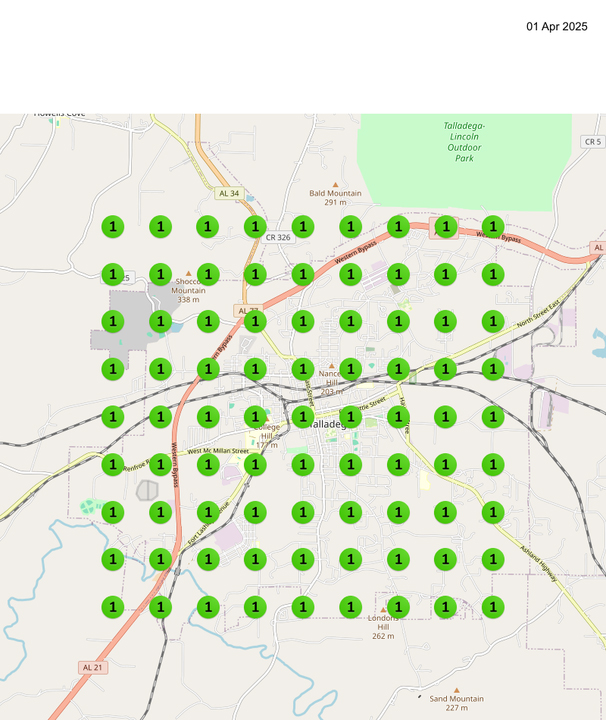 After implementing our optimization process, the April 2025 results (shown on the right) highlight a dramatic improvement. Nearly every grid point now shows top-three rankings, signaling strong local pack visibility throughout the entire market. This improvement indicates better relevance, stronger proximity signals, and consistent authority across the target region.